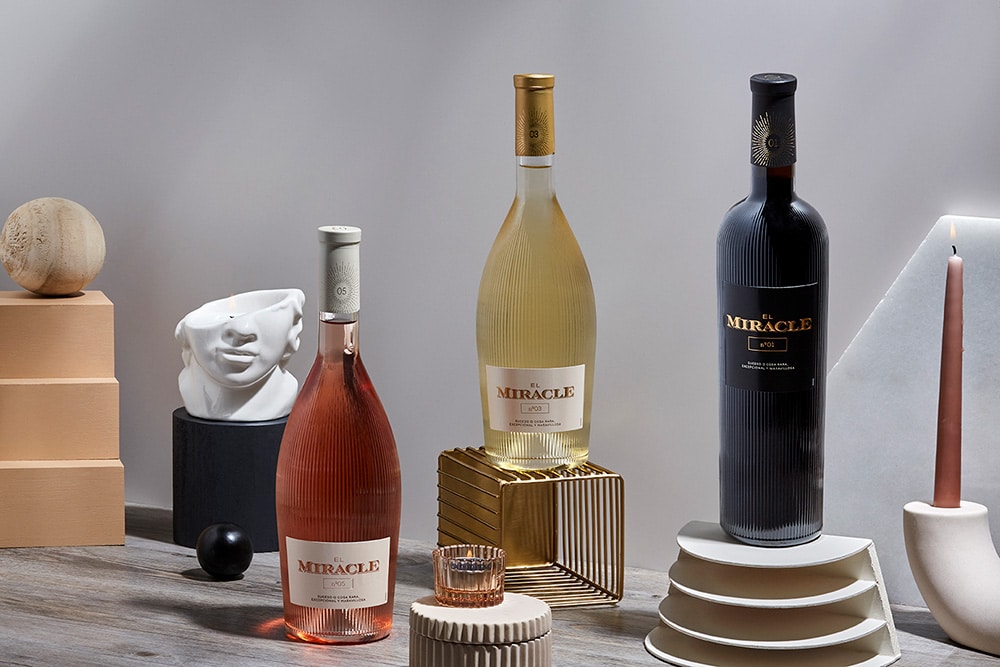 De merknaam El Miracle is het speelse visitekaartje van die strategie. Bij het 135-jarig bestaan werd de lijn neergezet als “meer dan wijn”, een designicoon (geribbelde fles), toegankelijke stijl en scherpe prijs. Het idee: veel beleving voor weinig geld. Die positionering zie je terug in de winkel: €6,99 bij PLUS voor rood (No. 01), wit (No. 03) en rosé (No. 05).