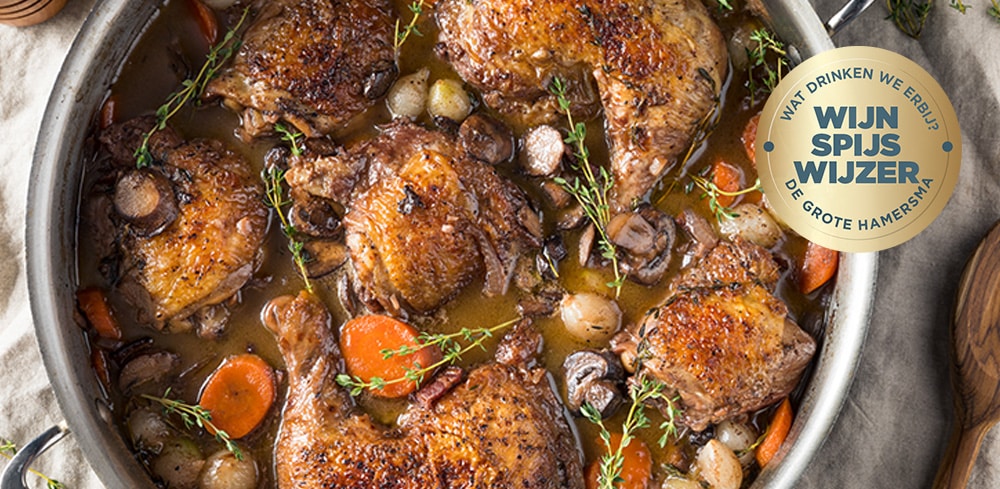 Bij Coq au Vin, passen wijnen zoals pinot noir, gamay, garnacha.